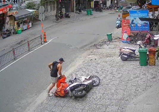 Cú tấn công khiến nạn nhân mất thăng bằng và ngã xuống đường. Tuy nhiên, hành vi bạo lực không dừng lại ở đó khi người đàn ông tiếp tục đạp ngã chiếc xe máy của nữ shipper, sau đó cầm hộp cơm rời khỏi hiện trường.