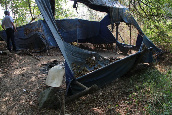 Ông Minh dựng liều sống ở một ngọn đồi thấp vắng người gần làng đại học. Được biết, ông Nguyễn Văn Minh về khu vực này sinh sống 20 năm nay.