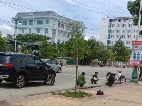 Vụ tai nạn làm cháu Hoàng Anh bị ngã xuống đường, va vào trụ đèn chiếu sáng trước cổng ngân hàng và tử vong sau đó.