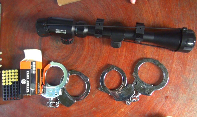 Quá trình khám xét tại nhà của Lê Quang Cường, lực lượng công an phát hiện, thu giữ 2 còng số 8, 23 viên đạn, 1 hộp tiếp đạn, 1 bộ phận của súng.