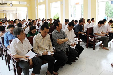 27 bị cáo được ngồi nghe và ghi chép khi đại diện VKSND luận tội. Ảnh: Việt Tường. |