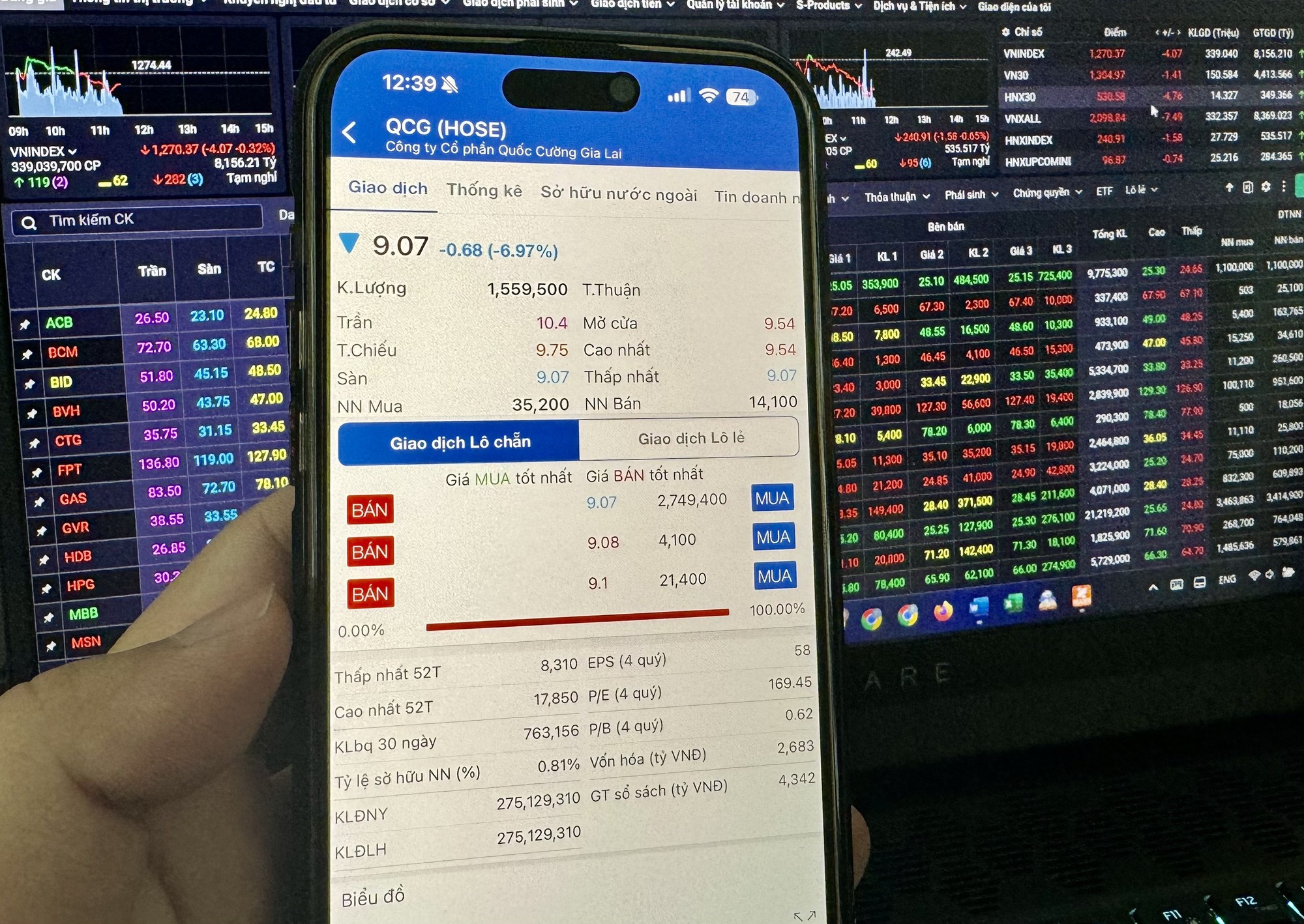 Đến sáng nay, hàng chục cảnh sát cơ động, điều tra viên của Bộ Công an và đại diện VKS đến nhà bà Nguyễn Thị Như Loan, Tổng giám đốc Quốc Cường Gia Lai. Sau thông tin này, chốt phiên sáng 19/7, cổ phiếu QCG của Quốc Cường Gia Lai rơi vào trạng thái "trắng bảng bên mua", giảm kịch sàn về dưới 10.000 đồng/cổ phiếu.