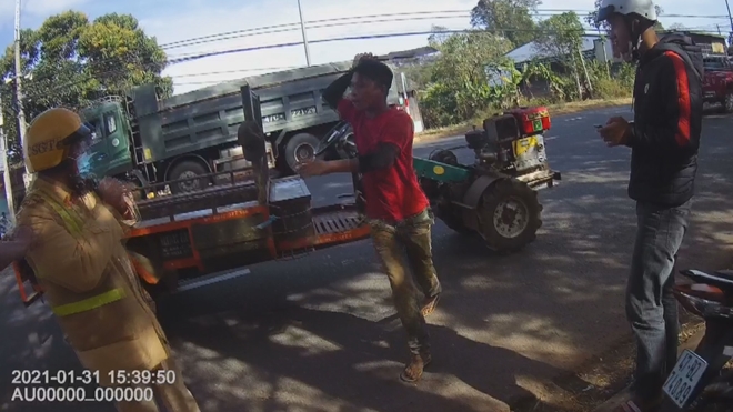 Chứng kiến sự việc, người đi đường cũng mang theo gậy, sào gỗ, hỗ trợ lực lượng CSGT trấn áp đối tượng. Khi bị người dân và lực lượng CSGT trấn áp, người đàn ông kia thất thế, bỏ chạy vào một vườn cà phê gần đó tẩu thoát.