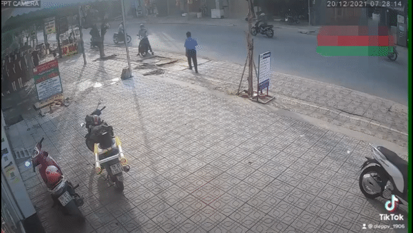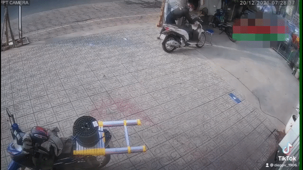 Cứ ngỡ gặp người tốt, ông H. mất cảnh giác, tiến tới chỗ xe bánh mì. Ngay lập tức, một đối tượng khác xuất hiện, đi tới chỗ để xe trước cửa hàng, bẻ khóa lấy đi xe SH của nhân viên.