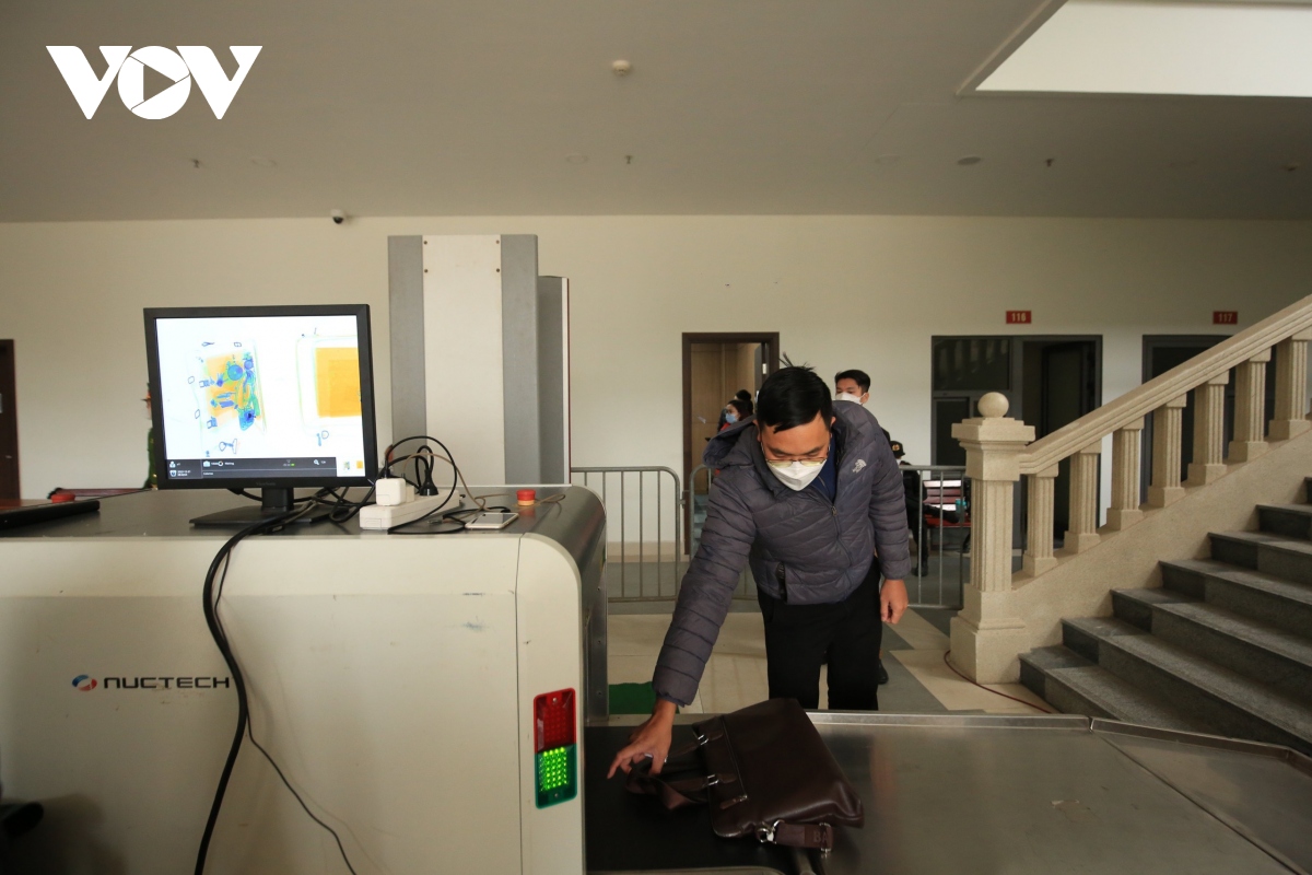 Sáng 21/12, an ninh phiên toà được thắt chặt. Người tham dự phiên toà phải xuất trình giấy tờ trước khi vào trụ sở toà án. Những người vào phòng xử tiếp tục phải qua máy quét an ninh, xuất trình giấy tờ.