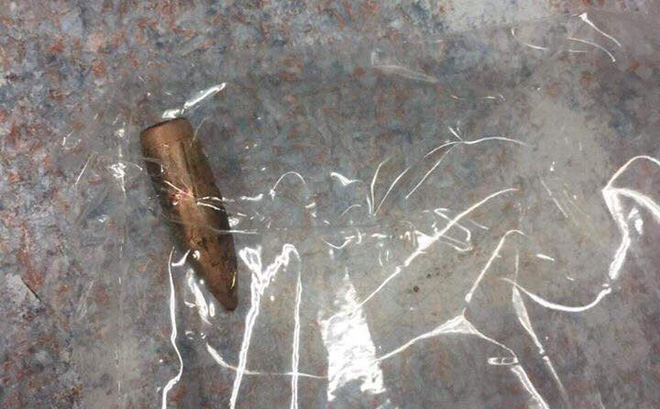 Đang đứng ngoài vườn, anh C. bất ngờ bị mảnh kim loại giống đầu đạn găm trúng đùi.