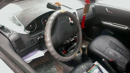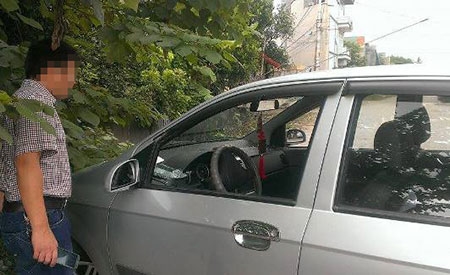 Chiếc xe ô tô bị đập vơ kính bên ghế lái |