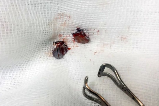 Các bác sĩ đã tiến hành phẫu thuật, lấy từ vết thương ra một vật nghi là đầu đạn chì của súng hơi.