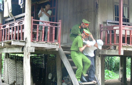 Trinh sát PC47 Công an tỉnh Điện Biên bắt giữ ma túy. Ảnh: Hoa Oanh Vũ. |