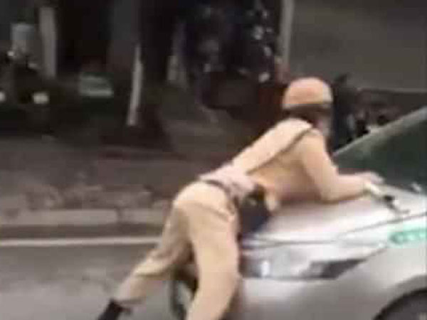 Tuy nhiên, tài xế điều khiển xe taxi này đã không chấp hành, thậm chí tăng ga hất trung úy Quân lên nắp capô.