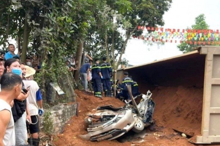 Đúng lúc này, ô tô do chị T.T.H. (SN 1979) và xe máy do chị B.T.C. (SN 1986) điều khiển đi hướng đối diện đã bị xe đầu kéo đè trúng. Cú va chạm khiến cả hai phương tiện bị biến dạng hoàn toàn, hai nạn nhân tử vong tại chỗ.