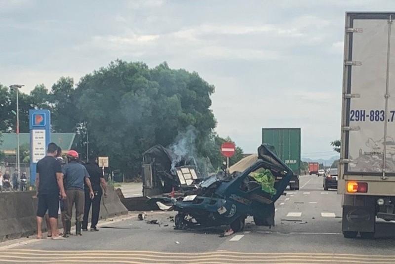Cú va chạm mạnh khiến ô tô tải 38C-180.65 bị đẩy sang làn đường chiều ngược lại và bị ô tô đầu kéo BKS 63C-076.68 do tài xế Trần Minh Mẫn (quê Tiền Giang) cầm lái, tông trực diện. Vụ tai nạn làm 3 người trên xe 38C - 180.65 tử vong.
