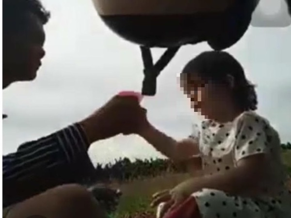 Trước đó, một đoạn clip dài khoảng vài phút, được đăng trên mạng xã hội facebook cho thấy cảnh người đàn ông bắt ép con gái khoảng 3 tuổi uống nước trong chai, còn có một số lời thoại: "Đi chết nha, uống một chai mấy vậy là đủ đi rồi" trong khi con gái khóc thét, vùng vẫy thoát ra, kêu "chua quá" và nôn ói, còn người đàn ông tiếp tục nói và ép cháu bé uống.