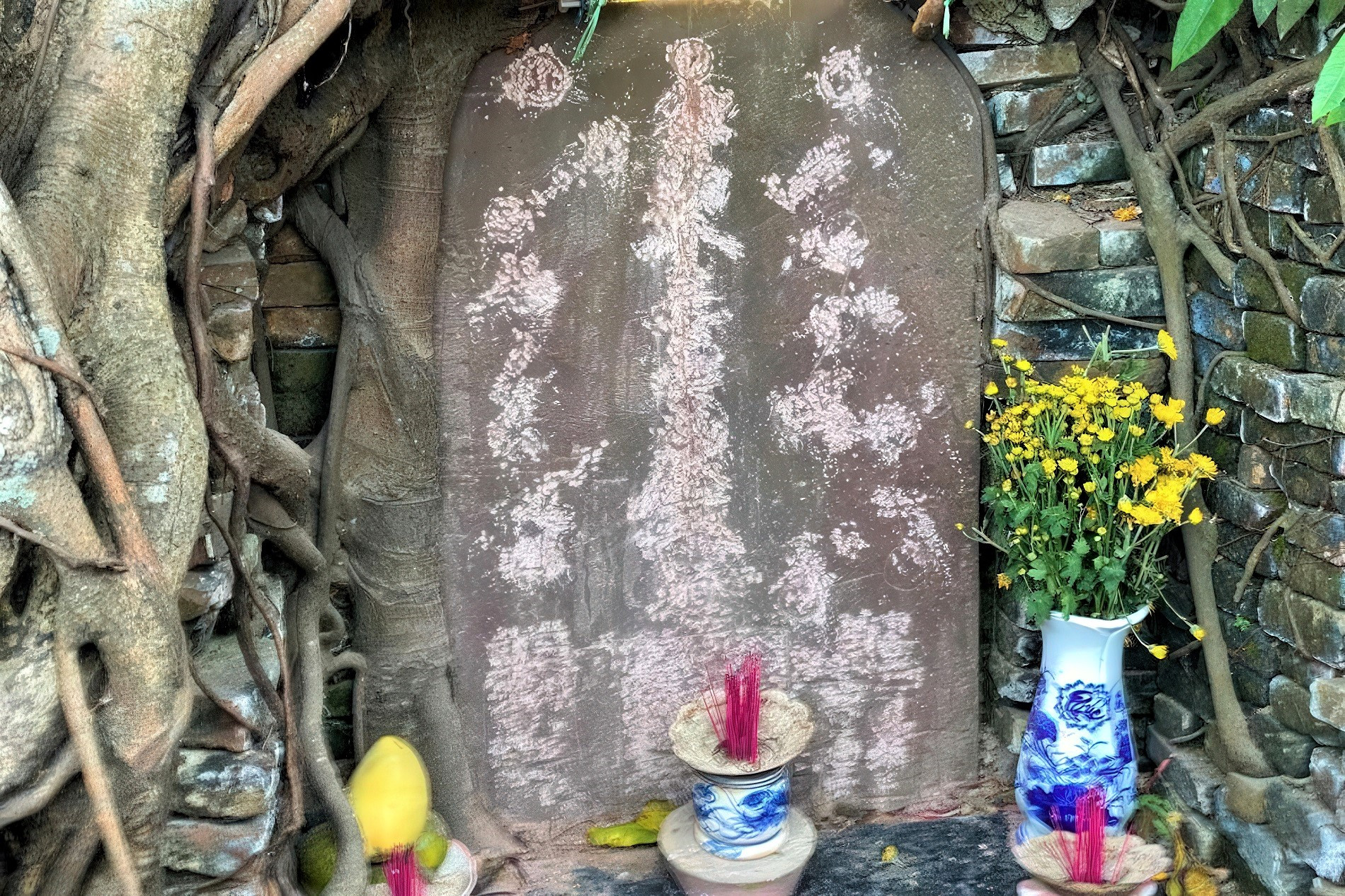 Trước đó, sáng 1/4, một số người dân đến cây đa cạnh nhà 98A đường Phan Châu Trinh để thắp hương, quét dọn thì phát hiện bề mặt tấm bia đá đặt dưới gốc đa cổ thụ đã bị đục phá, tẩy xóa.