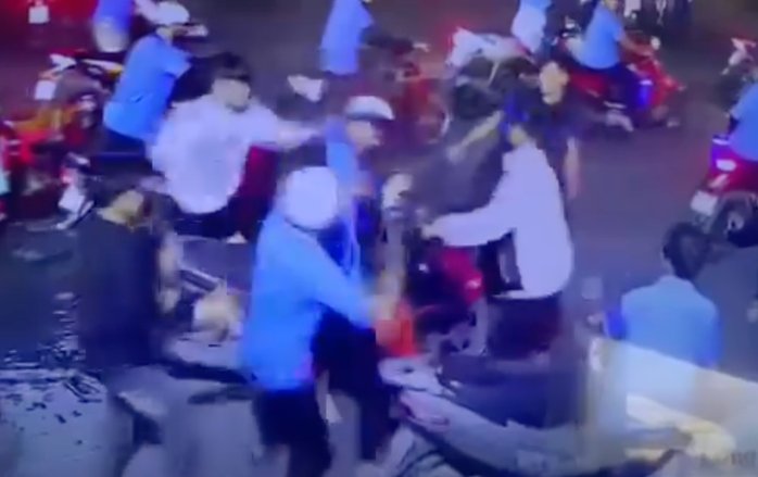 Cả nạn nhân và nhóm người tấn công đều mặc đồng phục của cùng một công ty, cho thấy đây là mâu thuẫn giữa các đồng nghiệp với nhau.