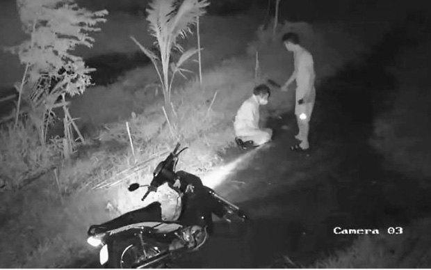 Trong đêm tối, ông Thái đội mũ bảo hiểm, lấy xe máy chạy ra khu vực trang trại của ông. Tới nơi, ông Thái bị Hải dùng dao ép dừng xe khiến xe khiến bị ngã xuống đường.