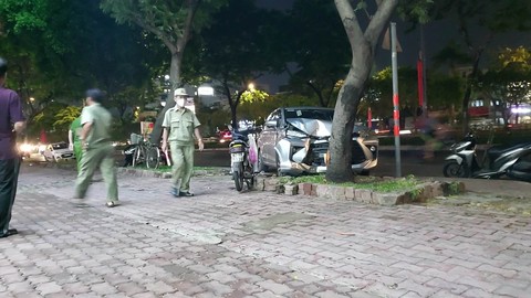 Đến 22 giờ khuya 8/5, Công an quận Bình Thạnh, TPHCM vẫn đang phong tỏa hiện trường để xác minh, điều tra làm rõ vụ tài xế xe công nghệ lao ô tô vào gốc cây rồi hô hoán bị cướp.