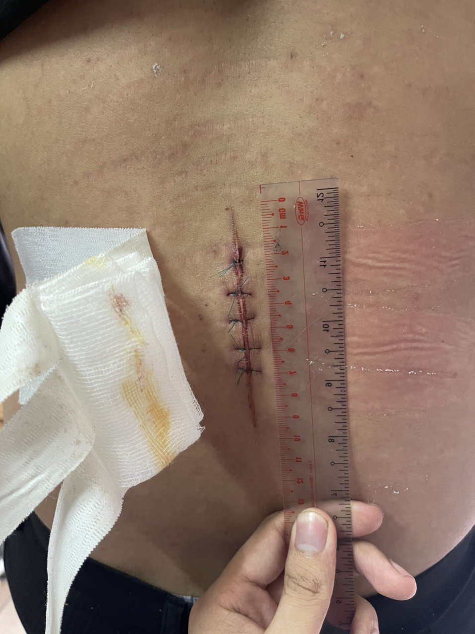 Nạn nhân chạy bộ hơn 100 mét ra tới trước một quán ăn trên đường Tây Thạnh thì vấp ngã, đối tượng này xông tới chém vào người anh D.