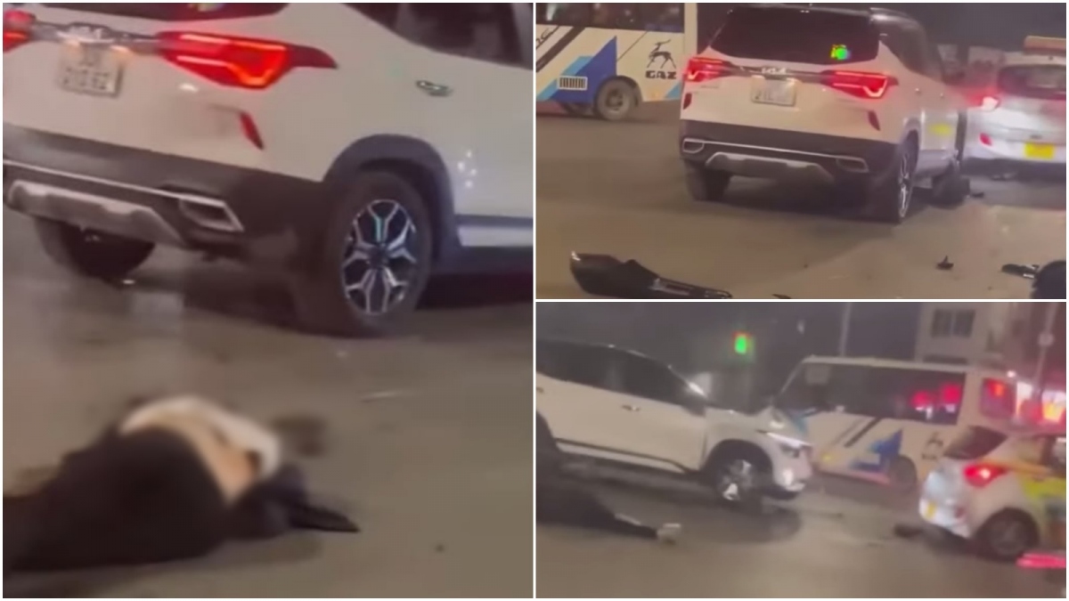 Mặc dù có tín hiệu đèn đỏ, nhiều phương tiện đang dừng đỗ, chiếc xe taxi vẫn chạy với tốc độ cao ra giữa ngã tư. Khi lách qua một ô tô đang dừng đỗ, xe taxi đâm trực diện vào một đôi nam nữ đi xe máy đang đứng chờ đèn đỏ và chỉ dừng lại khi va chạm với một ô tô khác giữa ngã tư.