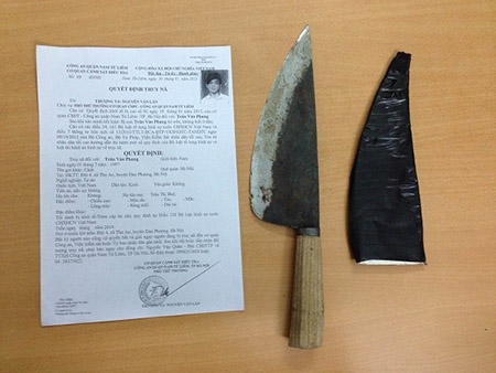 Hung khí được Trần Văn Phụng dùng chống trả công an. Ảnh: Nguyễn Hoàng. |