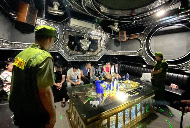 Tại phòng số 7 (tầng 3) có 8 khách gồm 4 nam, 4 nữ đang thuê phòng hát karaoke . Tại đây, lực lượng công an phát hiện 1 đĩa sứ có chứa chất bột màu trắng (nghi là ma túy loại ketamin ) chưa xác định khối lượng, 1 tờ tiền polime được cuộn tròn dạng ống hút, 1 thẻ nhựa màu đen và một số tang vật khác có liên quan. Đấu tranh ban đầu, 8 đối tượng khai nhận đã sử dụng trái phép chất ma túy .