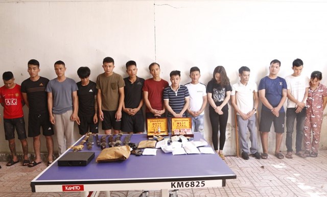 Các đối tượng bị bắt giữ tại trận, gồm: Trần Quốc Lưu (chủ nhà); Phan Thanh Tích (43 tuổi), Phan Văn Hải (40 tuổi), Phan Văn Sơn (39 tuổi), Nguyễn Quốc Nam (30 tuổi), Phan Văn Khánh (21 tuổi), Trần Văn Phong (25 tuổi) cùng trú tại xã Cổ Đạm; Hoàng Văn Đình (30 tuổi, trú tại xã Xuân Liên); Hoàng Minh Tuấn (39 tuổi, trú tại xã Xuân Hải, huyện Nghi Xuân).