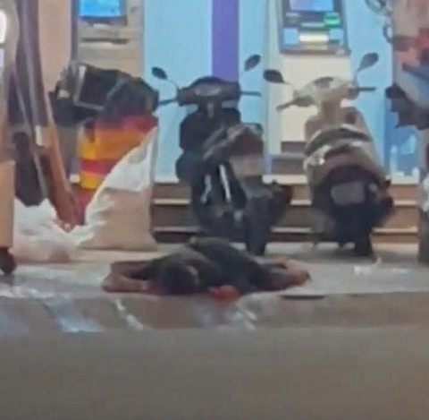 Một lúc sau, nạn nhân nằm gục xuống vỉa hè trong tình trạng bất động. Dù phát hiện hành vi của thanh niên nhưng những người xung quanh lo sợ, không ai dám tiếp cận gần hoặc can ngăn.
