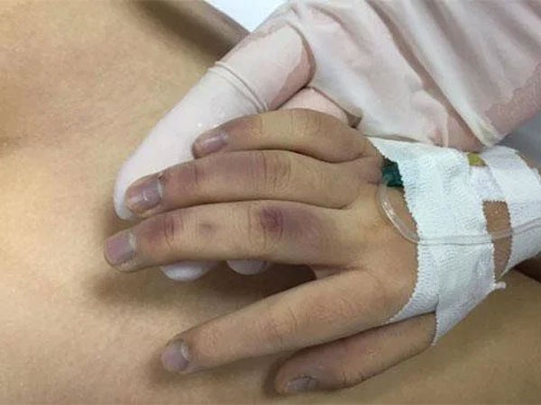 Sau đó, bé gái được mẹ cho đi tắm và bắt đầu bị nóng người, sốt. Vợ chồng ông Công cho bé gái uống hạ sốt và nằm nghỉ tại phòng nhưng sau đó không lâu, A. nôn.