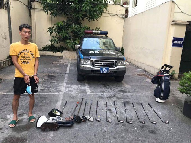 Đối tượng đã dùng gạch đập vỡ cửa kính, chui vào xe ô tô trộm cắp 1 túi đựng chứa 12 gậy chơi golf, 2 kính mắt thời trang, 2 ví tiền, 1 đôi giày. Sau đó, đối tượng tiếp tục trộm cắp 2 gương chiếu hậu của xe ô tô.