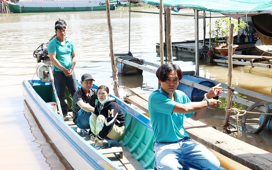 Theo đó, sau thời gian triển khai các biện pháp nghiệp vụ, theo dõi nắm tình hình, khoảng 14h10 ngày 5/12, Phòng An ninh điều tra Công an tỉnh chủ trì, phối hợp cùng các Phòng nghiệp vụ và Công an huyện An Phú tiến hành mật phục bắt quả tang Lê Phước Lương (SN 1990) và Nguyễn Việt Phương (SN 1985, cùng trú xã Khánh An, huyện An Phú, tỉnh An Giang) đang tổ chức đưa Nguyễn Thành Vinh (SN 1987) và Nguyễn Thị Hoa (SN 1981, cùng ngụ ấp An Hòa, xã Khánh An, huyện An Phú) nhập cảnh trái phép từ Campuchia về khu vực ấp An Hòa, xã Khánh An, huyện An Phú. Sau đó, Võ Văn Sơn (SN 1972, trú tại địa phương) đã đến cơ quan công an đầu thú.