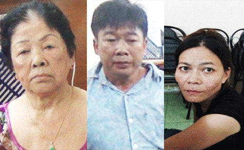Từ trái qua: trùm Nguyễn Thị Miết, Ngô Văn Thanh và Trần Thị Ngọc Thủy. Ảnh: Thanh Huyền |