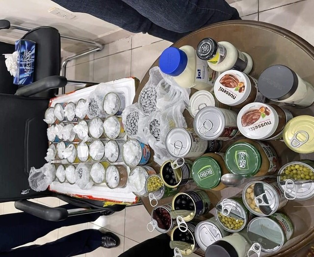 Kiểm tra bên trong, lực lượng chức năng phát hiện và thu giữ 12.000 viên thuốc lắc, được ngụy trang trong các loại đồ hộp.