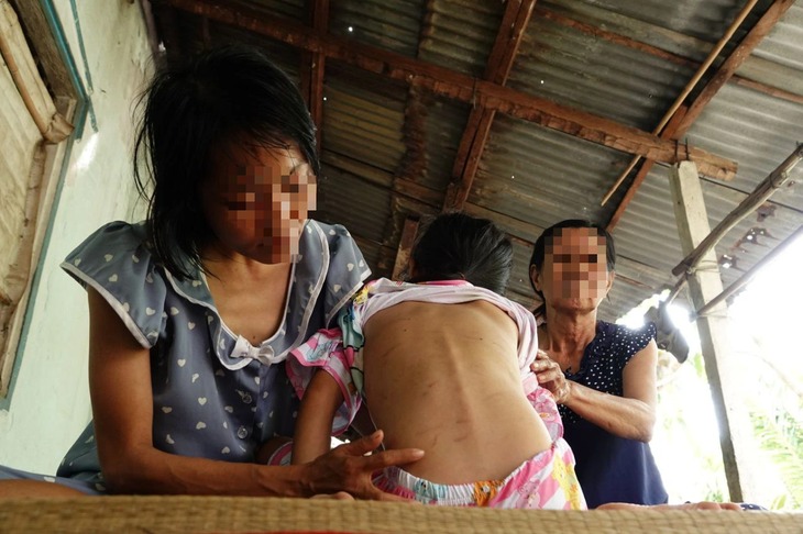 "Sau khi phẫu thuật tràn dịch màng phổi, điều trị một thời gian tại TP Cần Thơ, con tôi đã xuất viện. Hiện con tôi còn rất yếu, đi lại khó khăn. Cháu ngoại tôi mới 8 tuổi cũng bị đánh bầm mình", bà Thúy bức xúc nói.
