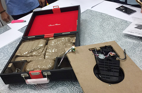 Tháo rời nhiều máy massage chân, máy lọc nước, loa điện tử... trong các kiện quà, nhà chức trách phát hiện gần 15 kg ma túy gồm thuốc lắc và Ketamine. Số chất cấm được nhét sâu vào các bộ phận máy móc, dán chặt vào thùng carton.