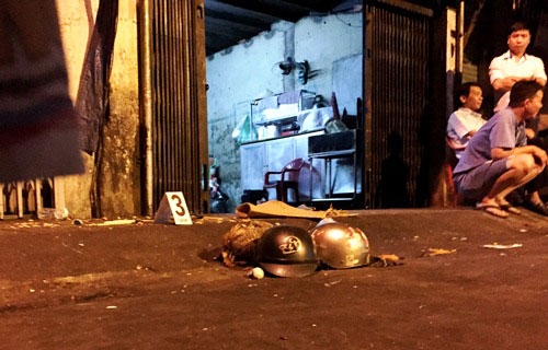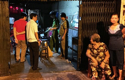 Tại hiện trường, cảnh sát thu giữ 2 nón bảo hiểm, bàn ghế, một con gà đá đã chết. Trong nhà máu vương vãi trên cầu thang, tường và nền đất.