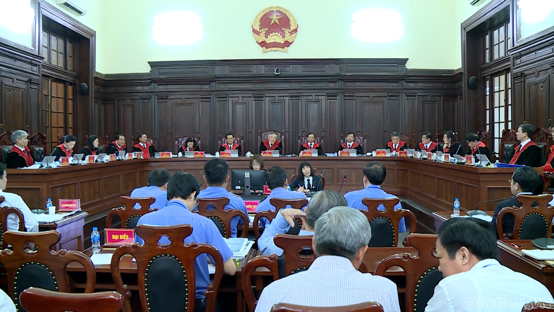 Trong phiên xét xử, Chủ tọa, Chánh án TANDTC Nguyễn Hòa Bình đã mời thành viên HĐTP tham gia làm rõ nội dung kháng nghị của VKSNDTC liên quan đến các vật chứng như: ghế, thớt, dao…