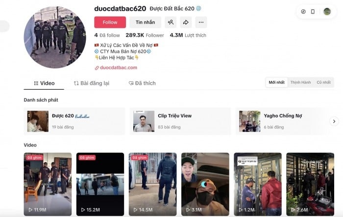 Trên nền tảng TikTok, Được Đất Bắc thường xuyên đăng tải các clip khoe “thành tích” đòi nợ thành công, kèm theo nhiều phát ngôn mang tính khiêu khích và đe dọa như: “Đòi cho bỏ ghét”; “Nợ khó có Được lo, Được Đất Bắc – khắc tinh của nợ”; hay “Nhận thông báo bán nợ trong vòng 3 ngày không liên hệ thanh toán, Được đến tận nhà đòi nợ nha”.