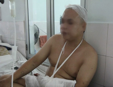 Khi đang ngồi uống nước ngoài đường, anh M. bị 3 tên giang hồ cầm dao, kiếm lao vào chém tới tấp khiến nạn nhân nhập viện vì đứt gân tay, bay 3 mảnh hộp sọ.
