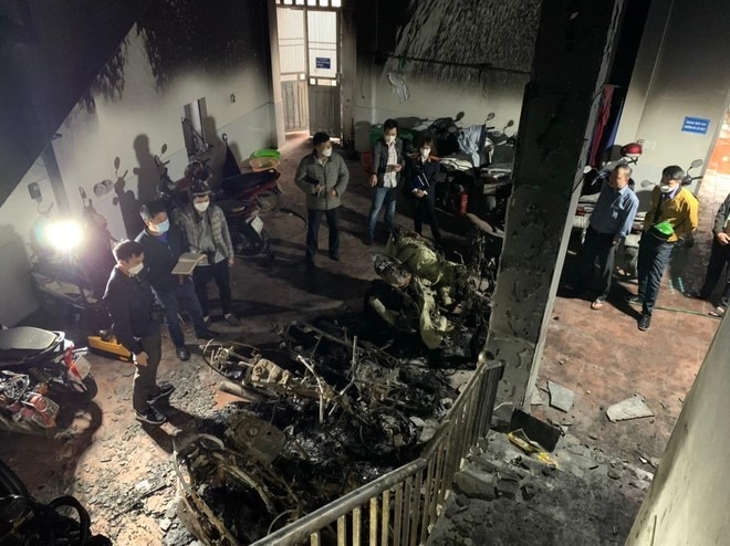Khi vào bên trong, bị cáo tìm chiếc xe máy mục tiêu, rồi đổ hơn 1 lít xăng lên chiếc xe này, lấy bao diêm quẹt lửa ném vào. Chiếc xe máy bùng cháy và nhanh chóng gây cháy toàn bộ khu vực chân cầu thang tầng 1 của khu nhà trọ.