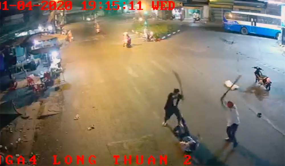 Gọi điện cho Nam, hai đối tượng biết được con nợ đang ở cây xăng gần ngã 4 Long Thuận (xã Long Thuận, TX Gò Công). Tìm đến gặp, Duy, Tú cầm dao và cây gỗ lao vào chém, đánh dã man. Nam dùng dao chống trả rồi bỏ chạy nhưng bị té ngã nên bị Tú và Duy lao tới đánh, chém tới tấp.