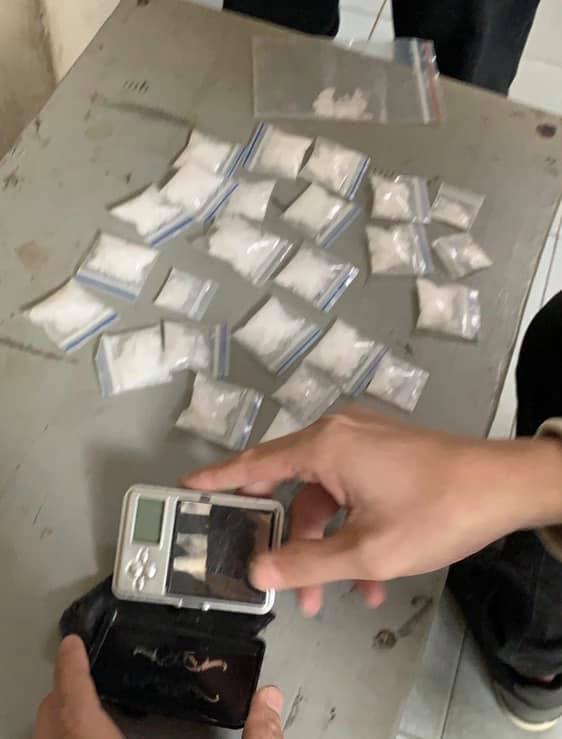 Quá trình kiểm tra, đã phát hiện trong chiếc túi “LV” xách tay của người phụ nữ có 1 bọc nilon, bên trong chứa 28 túi nilon nhỏ đựng nhiều tinh thể màu trắng và 1 chiếc cân điện tử dính tinh thể trắng trên bề mặt, nghi là ma túy. Đấu tranh tại chỗ, 2 đối tượng thừa nhận các gói nilon chứa ma túy “đá”.