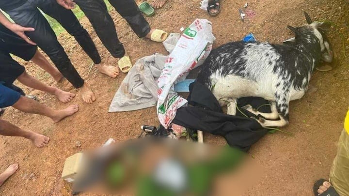 Sau đó 3 người này cho 2 con dê vào một bao tải và mang lên ô tô, còn một con dê thì nằm chết tại hiện trường.
