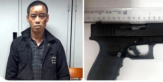 Trong quá trình khống chế, giằng co, bắt giữ Minh có tiếng nổ. Ngay sau đó, tổ công tác tiếp tục thu giữ trên tay phải của Minh 1 khẩu súng ngắn bằng kim loại màu đen, trên thân có kí hiệu Lock 19 Austria 9x19-K4YKZG1YS01-2308074. Kiểm tra hộp tiếp đạn của súng có 5 viên.