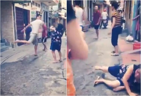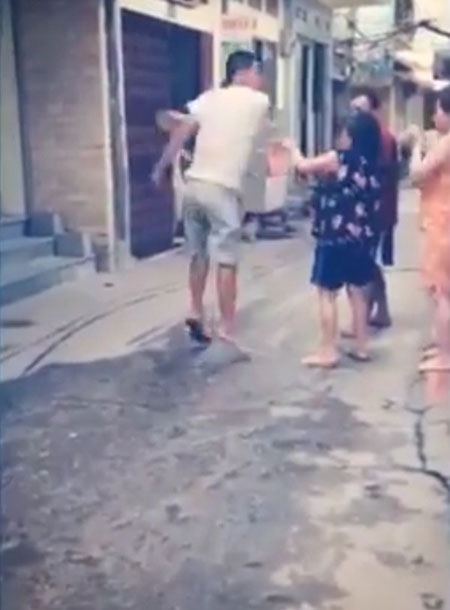 Theo đó, clip ghi lại cảnh một nam thanh niên mặc áo phông trắng đang cầm dép lê quật liên tiếp vào mặt người phụ nữ. Cùng với hành động đánh liên tiếp, nam thanh niên này không ngừng văng ra những lời chửi rủa cay nghiệt dành cho nạn nhân. Thấy vậy, rất nhiều người dân sống xung quanh khu phố đã lao vào can ngăn, tuy nhiên người này vẫn không hề có dấu hiệu hạ hỏa.