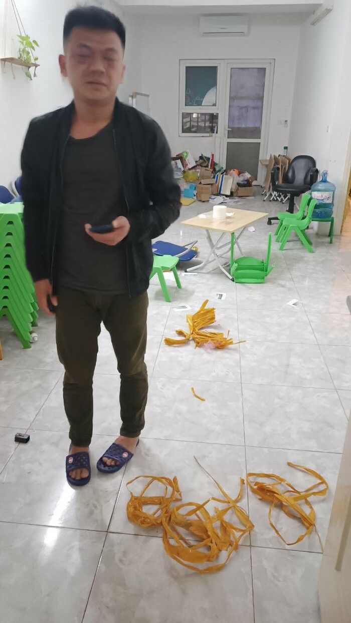 Nhóm đối tượng cũng đã được camera ngoài hành lang tầng chung cư ghi lại và đã cung cấp cho công an điều tra làm rõ. Tại hiện trường công an phát hiện 1 kính mắt nghi của đối tượng bị rơi lại tại hiện trường", cán bộ tổ dân phố chia sẻ.