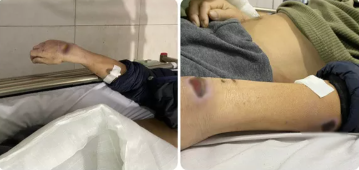 Nhận tin báo, bà L. lập tức đến bệnh viện thì thấy chồng mình đã chết, trên người có rất nhiều vết thương, bầm tím, xây xát vùng mặt, chân, tay. Trên thi thể có những vết thương đã đóng vảy và có cả những vết thương mới, có dấu vết máu đã khô ở vùng mặt...