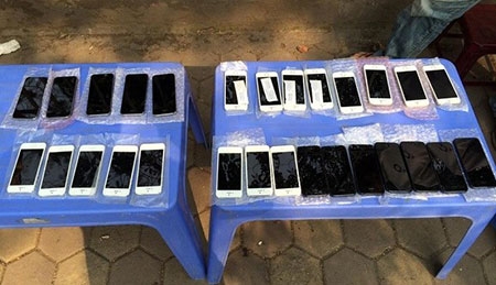 Bên trong, cảnh sát kiểm tra thấy 28 điện thoại iPhone 5 và iPhone 5S không rõ nguồn gốc.