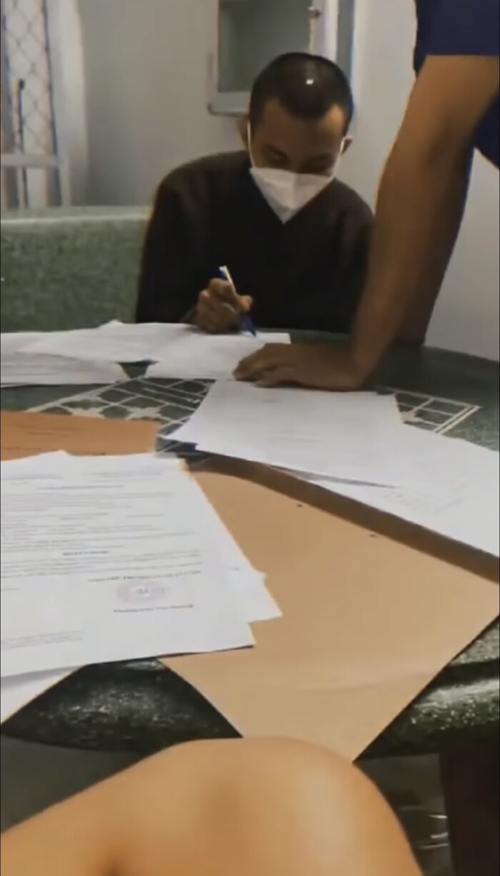 Với bức ảnh còn lại, Nhất Nguyên đang ký vào loạt giấy tờ để trên bàn, phía đối diện anh là các cán bộ công an. Hiện những bức ảnh này vẫn đang được chia sẻ với tốc độ chóng mặt trên các diễn đàn.