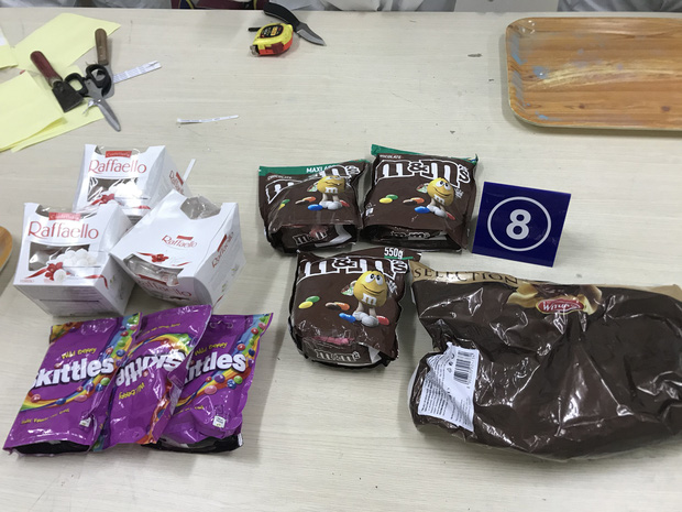 Toàn bộ số ma tuý trên được ngụy trang tinh vi trong ruột những viên kẹo socola (mỗi viên kẹo chứa khoảng hơn 20 viên nén MDMA) hoặc để lẫn trong các gói bánh với phương thức đóng gói bao bì, trọng lượng… giống hệt như sản phẩm thật, bằng mắt thường không thể phát hiện được.