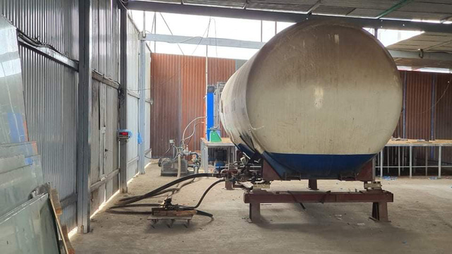 Gas từ xe bồn sẽ được cấp vào bình chứa dung tích lớn trong cơ sở sang chiết gas trái phép tại huyện Mỹ Hào